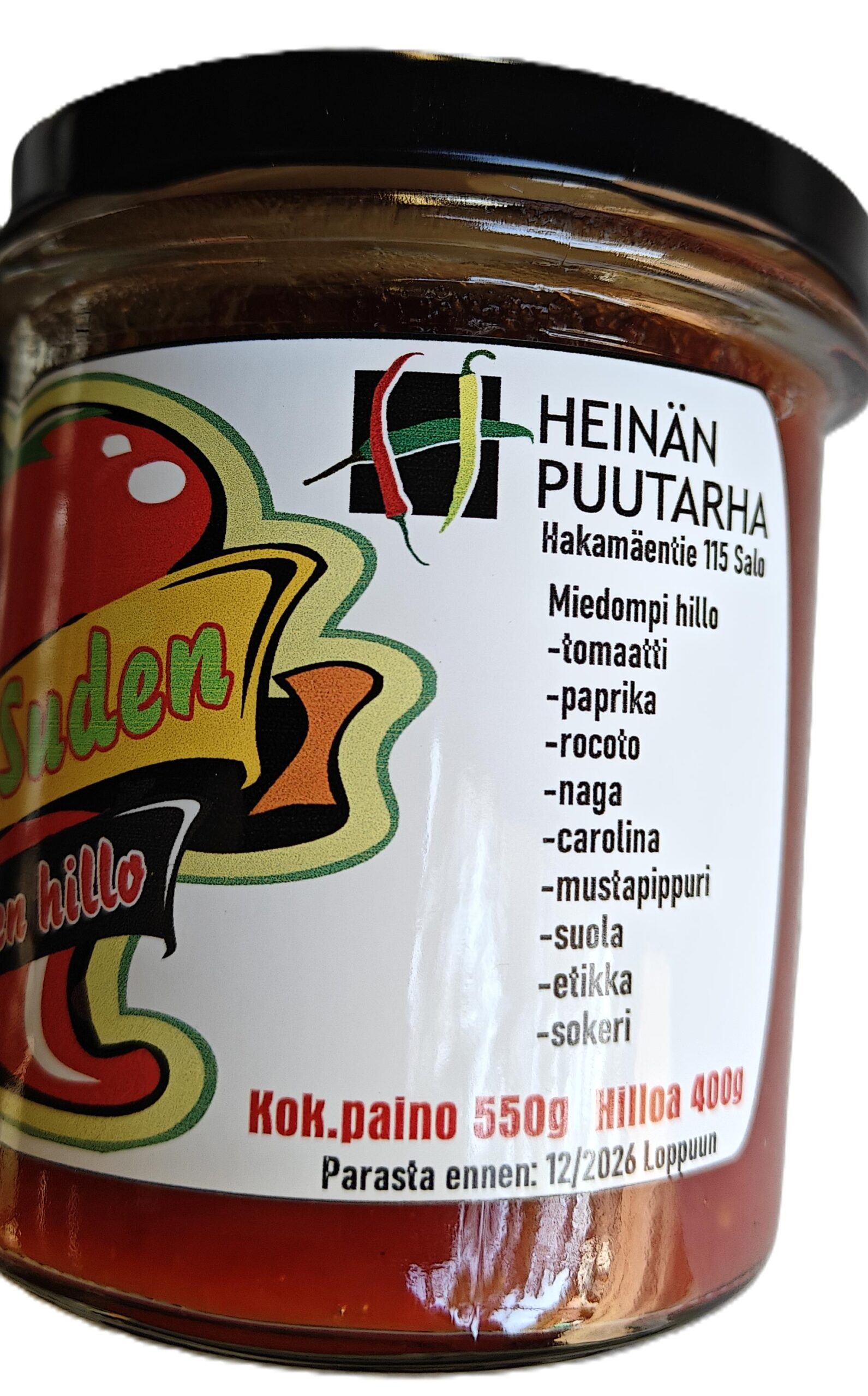 TOMAT, PEPPAR, ROCOTO, NAGA MORICH, CAROLINA REAPER, SVARTPEPPAR, SALT, VINÄGER, SOCKER.